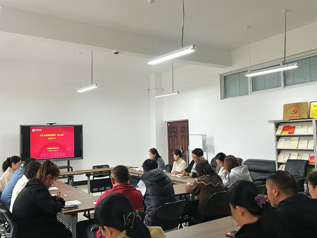 2025年10月16日下午,申博官网党支部集中学习《习近平谈治国理政》第五卷。本次学习由办公室主任宋艳领学,全体党员参加学习。