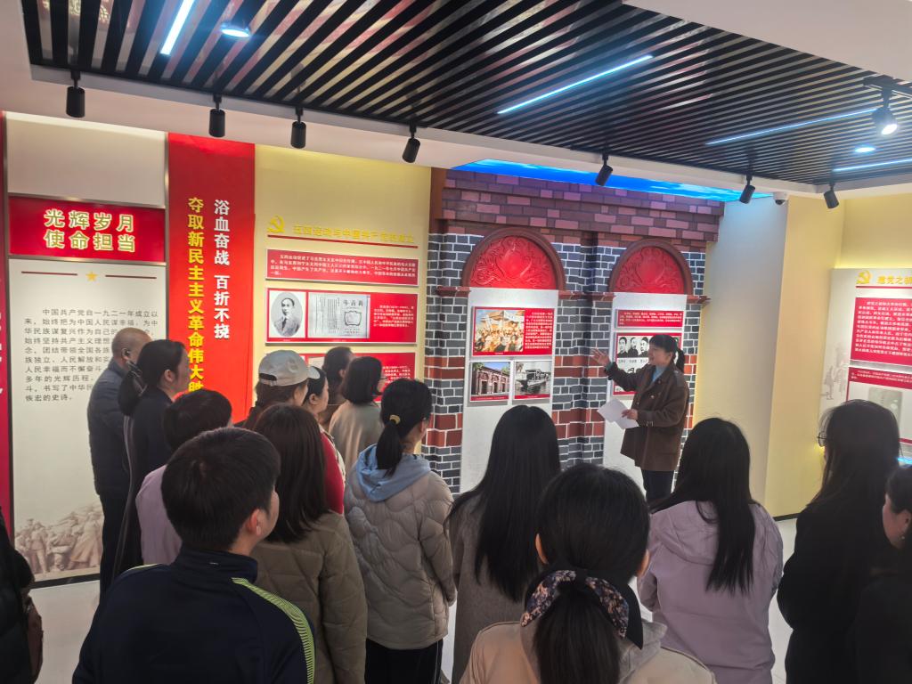 参观过程中,全体党员教师在李淑青的讲解引导下,认真聆听、仔细观看。通过一幅幅珍贵历史图片、一段段生动记述文字和一件件具体历史实物,全体党员深刻感受了党在百年征程中筚路蓝缕、砥砺前行的光辉岁月,进一步领悟了“中国共产党为什么能、马克思主义为什么行、中国特色社会主义为什么好”所蕴含的历史逻辑、理论逻辑和实践逻辑。